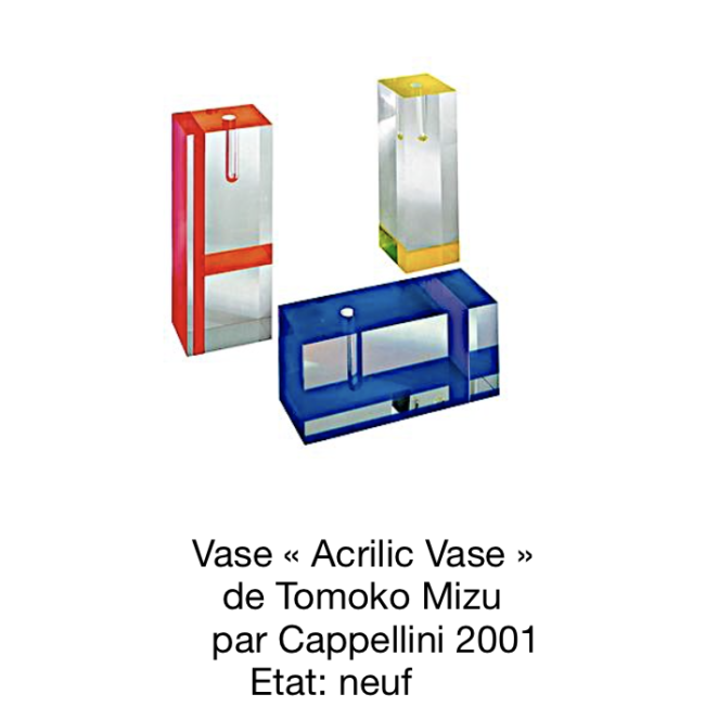 Vase « Acrilic Vase » Tomoko Mizu Année 2001 Cappellini Etat: Neuf Prix sur demande Description: Acrilic Vase by Tomoko Mizu is made of plexiglass® and is available in three different sizes, in set colour pairings. The transparent finish is matched with colourful inserts, to create decorations with a decidedly geometric flair: red/orange, fluo yellow and…
